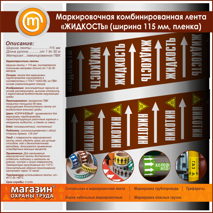 Маркировочная комбинированная лента «ЖИДКОСТЬ» (ширина 115 мм, самоклеящаяся плёнка с ламинированием) в Волгограде купить