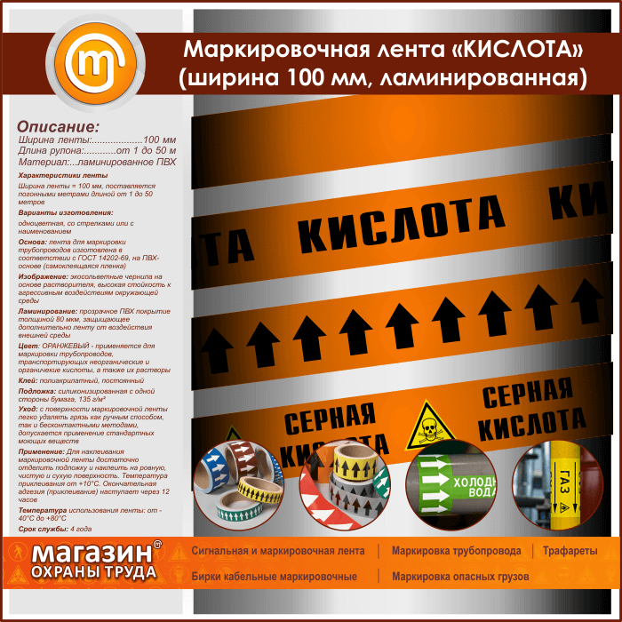 Маркировочная лента «КИСЛОТА» (ширина 100 мм, самоклеящаяся плёнка) в Волгограде купить