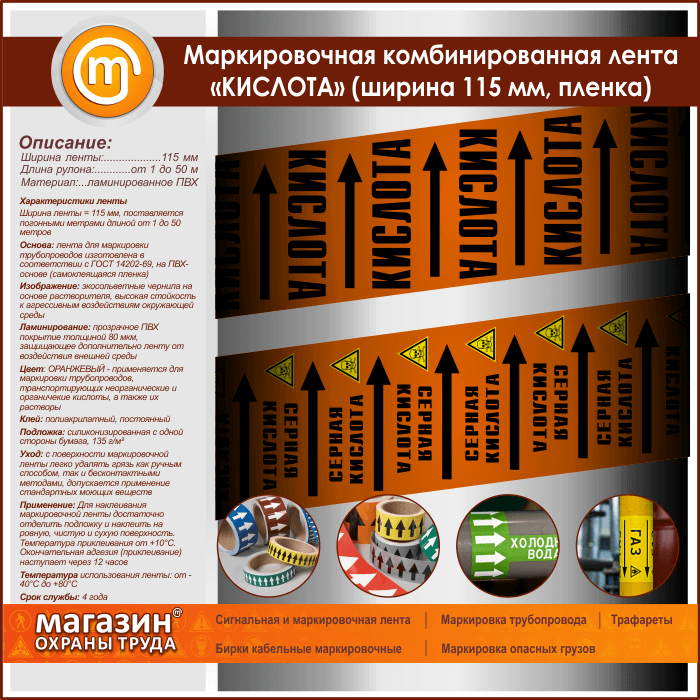 Маркировочная комбинированная лента «КИСЛОТА» (ширина 115 мм, самоклеящаяся плёнка с ламинированием) в Волгограде купить