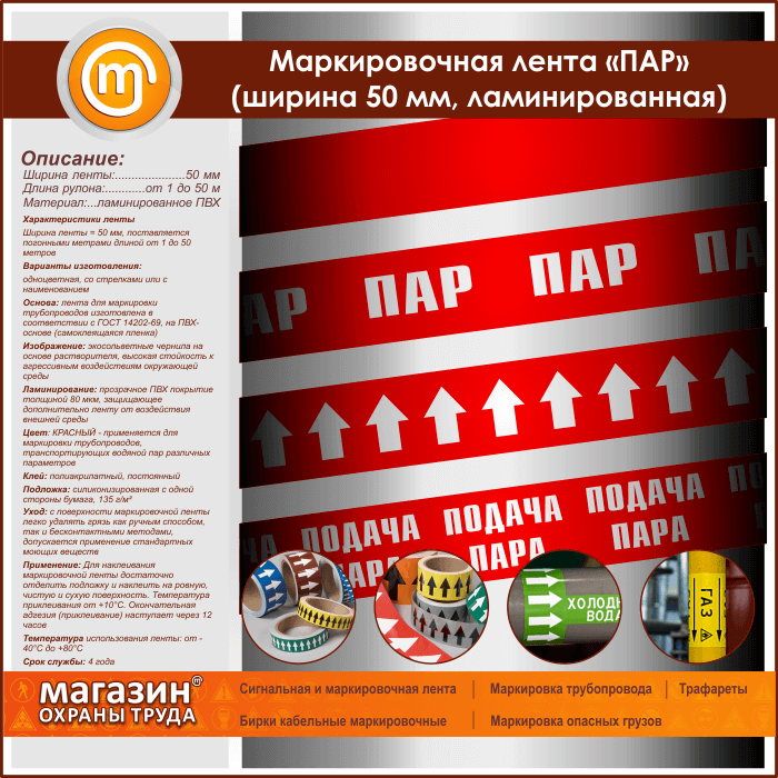 Маркировочная лента «ПАР» (ширина 50 мм, самоклеящаяся плёнка) в Волгограде купить