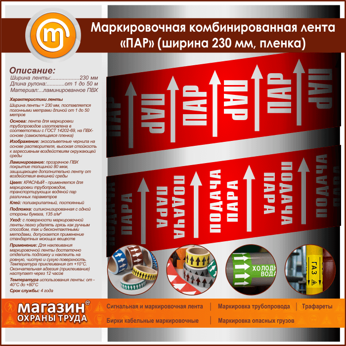 Маркировочная комбинированная лента «ПАР» (ширина 230 мм, самоклеящаяся плёнка) в Волгограде купить