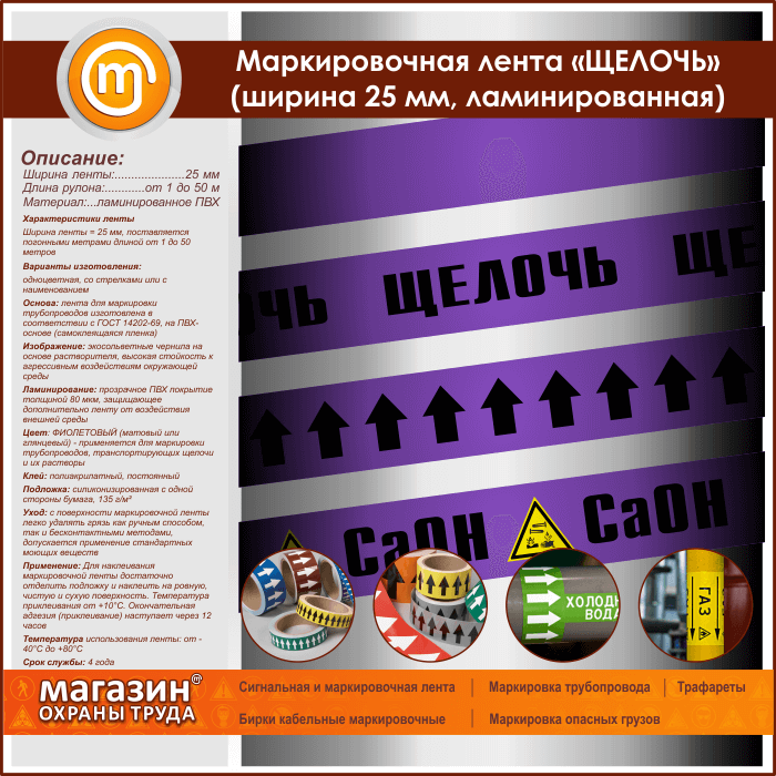 Маркировочная лента «ЩЕЛОЧЬ» (ширина 25 мм, самоклеящаяся плёнка с ламинированием) в Волгограде купить