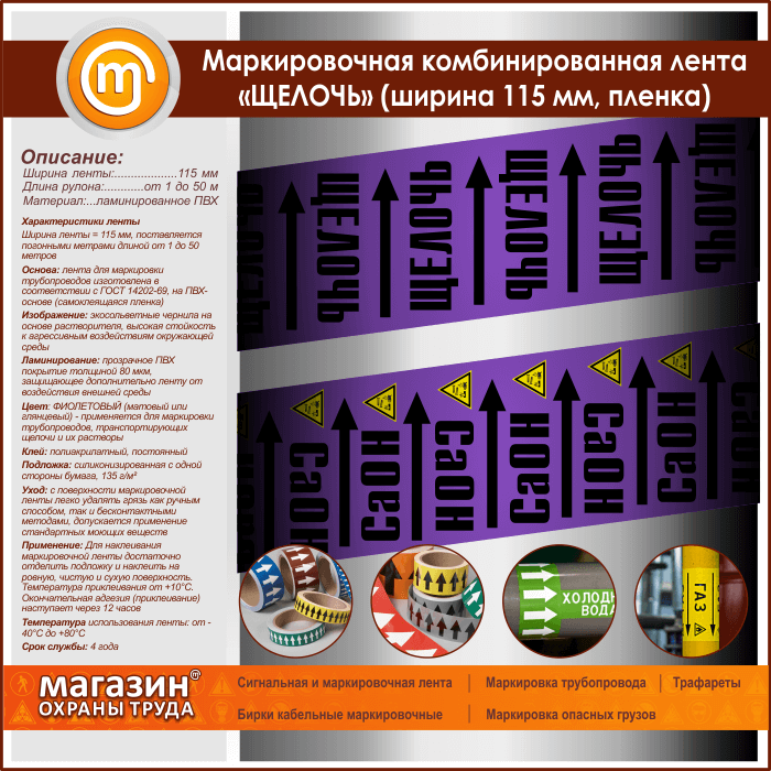 Маркировочная комбинированная лента «ЩЕЛОЧЬ» (ширина 115 мм, самоклеящаяся плёнка с ламинированием) в Волгограде купить