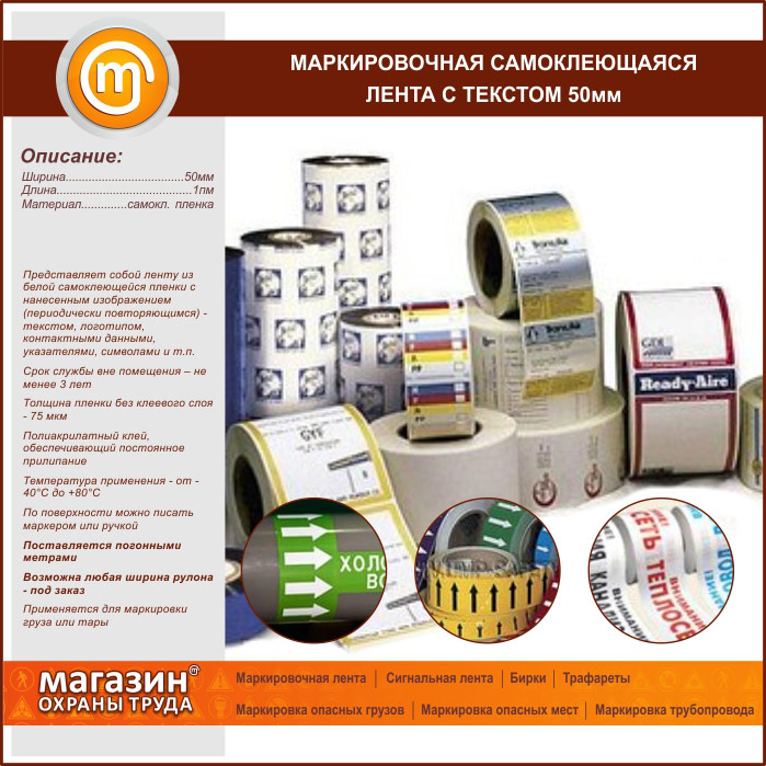 Маркировочная самоклеящаяся лента с текстом 50 мм в Волгограде купить