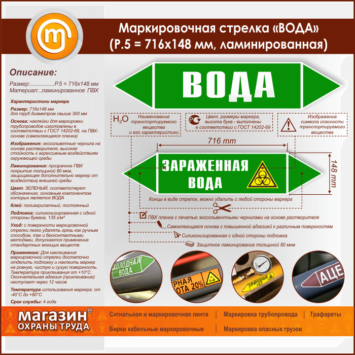 Маркировочная стрелка «ВОДА» (P.5 = 716х148 мм, самоклеящаяся плёнка с ламинированием) в Волгограде купить