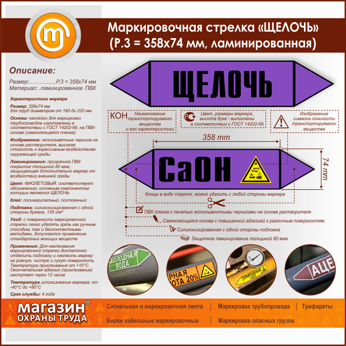 Маркировочная стрелка «ЩЕЛОЧЬ» (P.3 = 358х74 мм, самоклеящаяся плёнка с ламинированием) в Волгограде купить