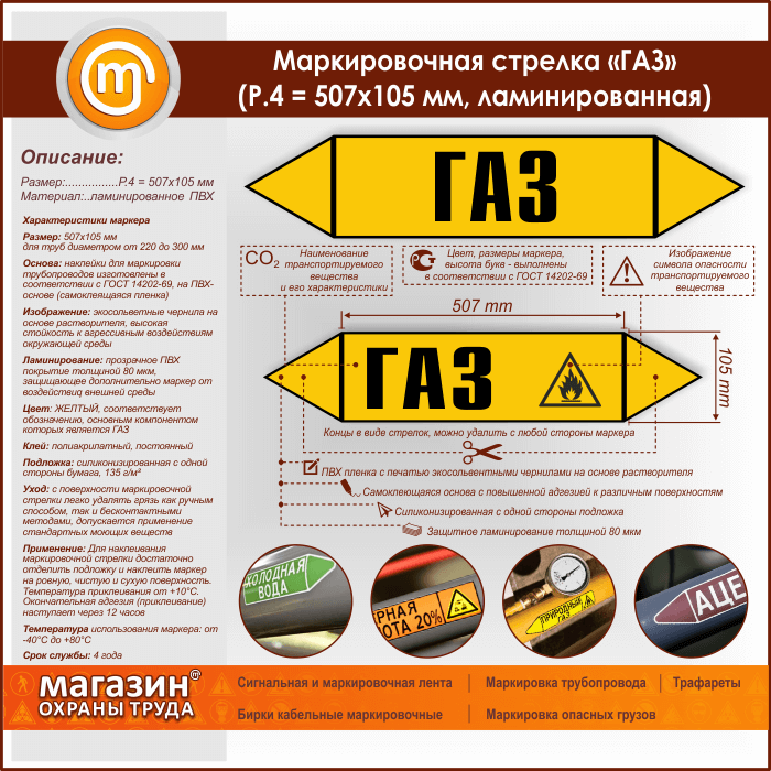 Маркировочная стрелка «ГАЗ» (P.4 = 507х105 мм, самоклеящаяся плёнка с ламинированием) в Волгограде купить