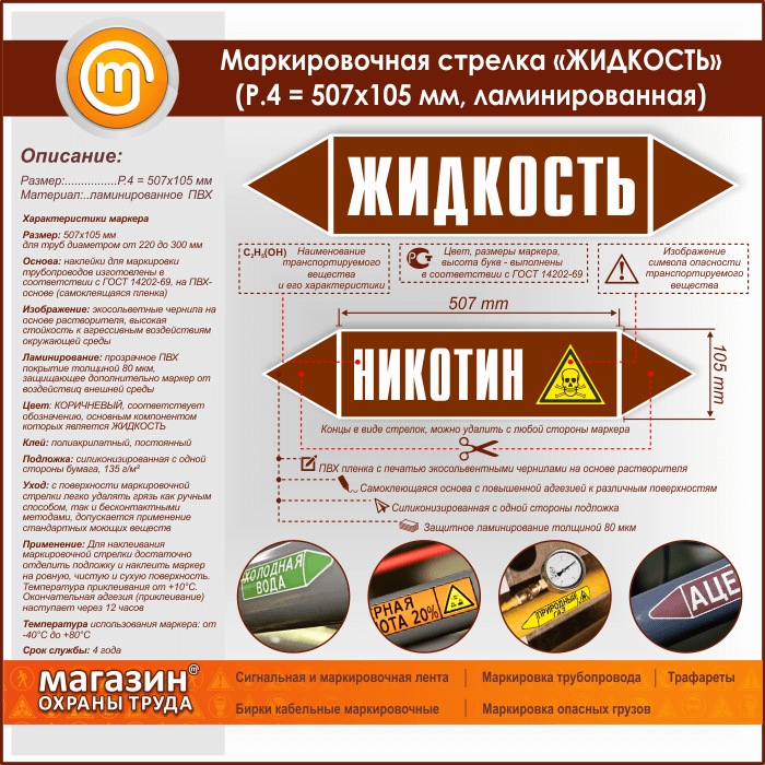 Маркировочная стрелка «ЖИДКОСТЬ»(P.4 = 507х105 мм, самоклеящаяся плёнка с ламинированием) в Волгограде купить