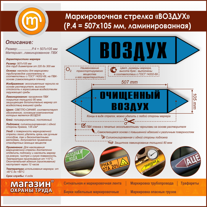 Маркировочная стрелка «ВОЗДУХ» (P.4 = 507х105 мм, самоклеящаяся плёнка с ламинированием) в Волгограде купить