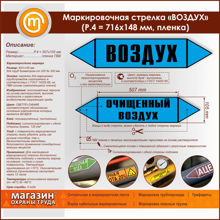 Маркировочная стрелка «ВОЗДУХ» (P.4 = 507х105 мм, самоклеящаяся плёнка) в Волгограде купить