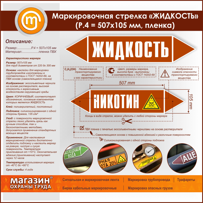 Маркировочная стрелка «ЖИДКОСТЬ»(P.4 = 507х105 мм, самоклеящаяся плёнка) в Волгограде купить