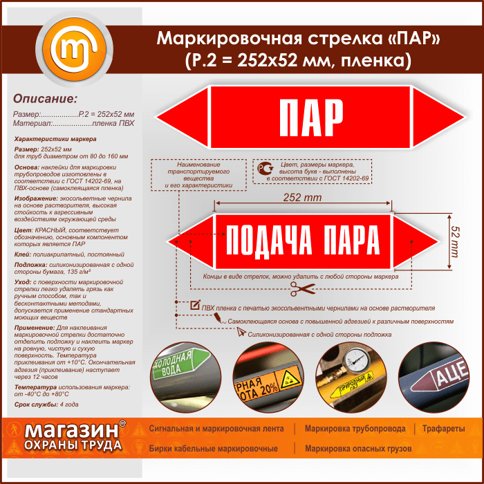 Маркировочная стрелка «ПАР» (P.2 = 252х52 мм, самоклеящаяся плёнка) в Волгограде купить