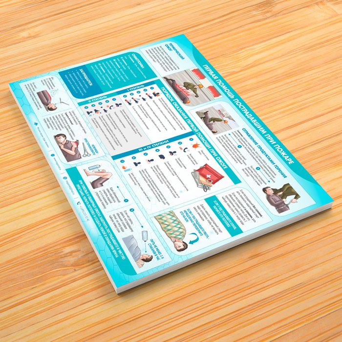 Плакат «Первая помощь пострадавшим при пожаре» (М-22, ламинированная бумага, А2, 1 лист) в Волгограде купить