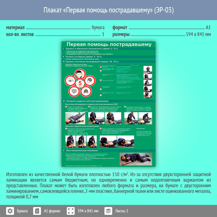 Плакат «Первая помощь пострадавшему» (ЭР-03, бумага, А1, 1 лист) в Волгограде купить