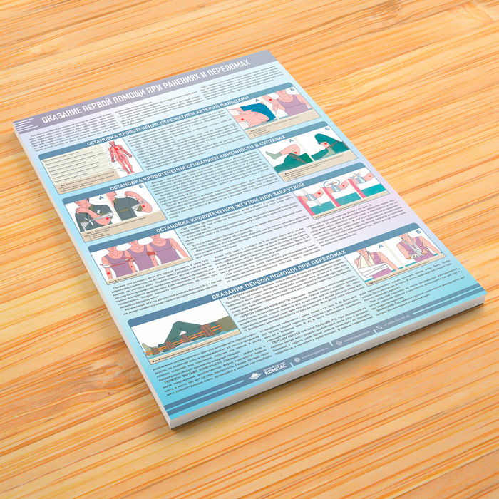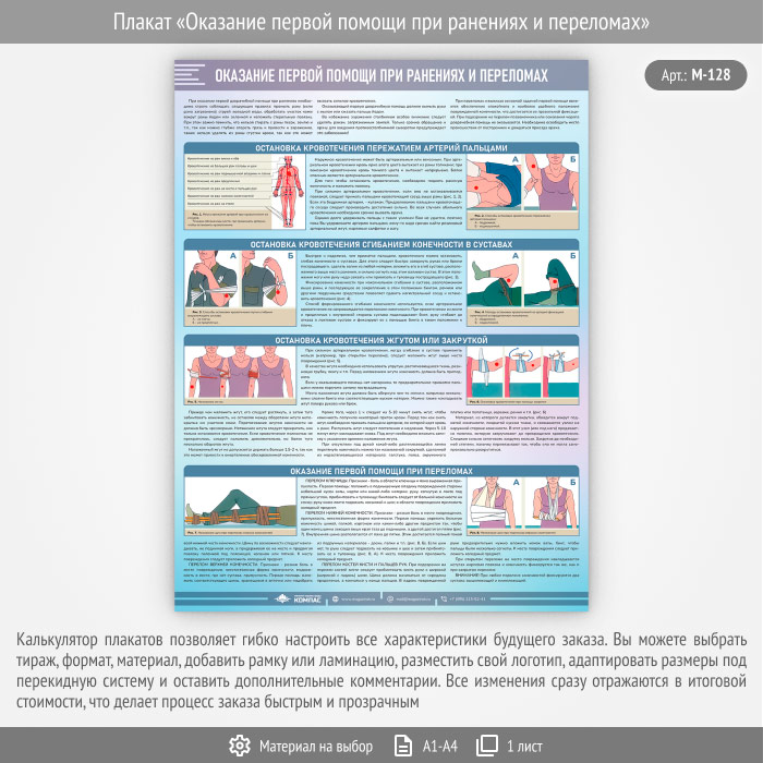 Плакат «Оказание первой помощи при ранениях и переломах» (М-128, 1 лист) в Волгограде купить