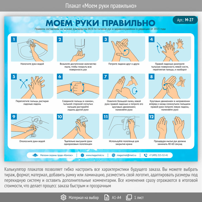 Плакат «Моем руки правильно» (М-27, 1 лист) в Волгограде купить