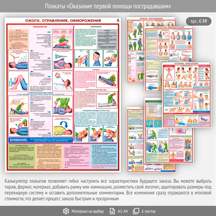 Плакат «Оказание первой помощи пострадавшим» (С-39, 6 листов) в Волгограде купить
