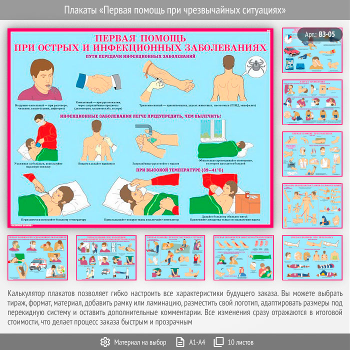 Плакаты «Первая помощь при чрезвычайных ситуациях» (ВЗ-05, 10 листов) в Волгограде купить