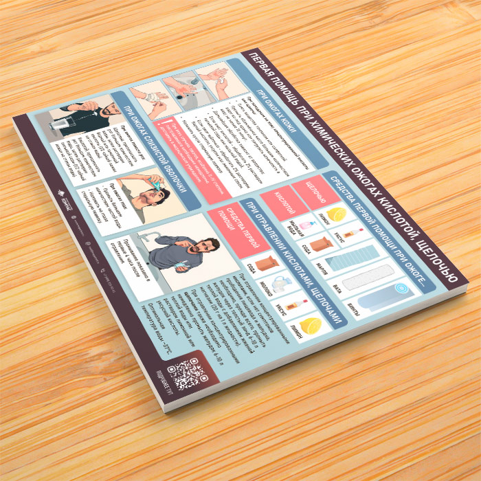 Плакат «Первая помощь при химических ожогах кислотой, щелочью» с QR (М-132, 1 лист) в Волгограде купить