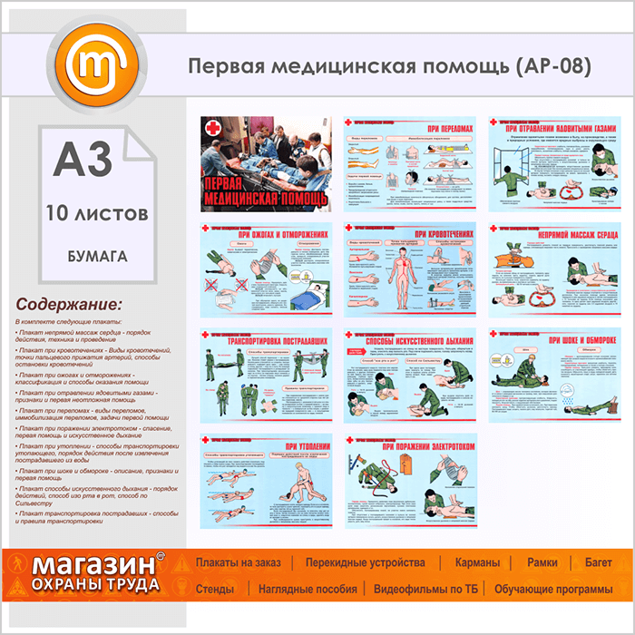 Плакаты «Первая медицинская помощь» (АР-08, бумага, А3, 10 листов) в Волгограде купить