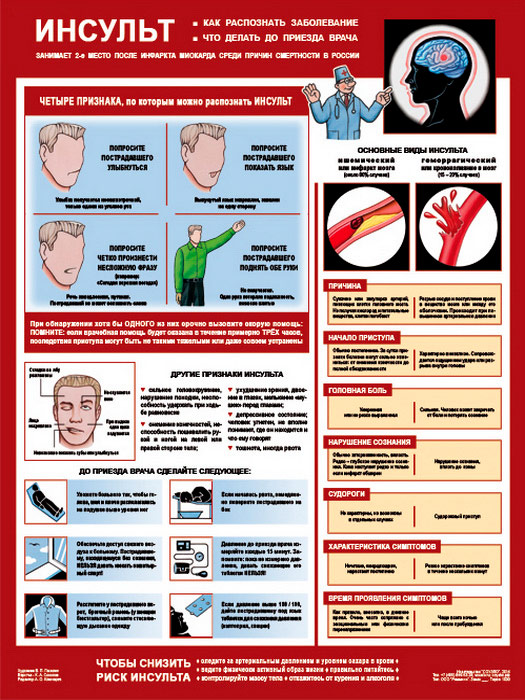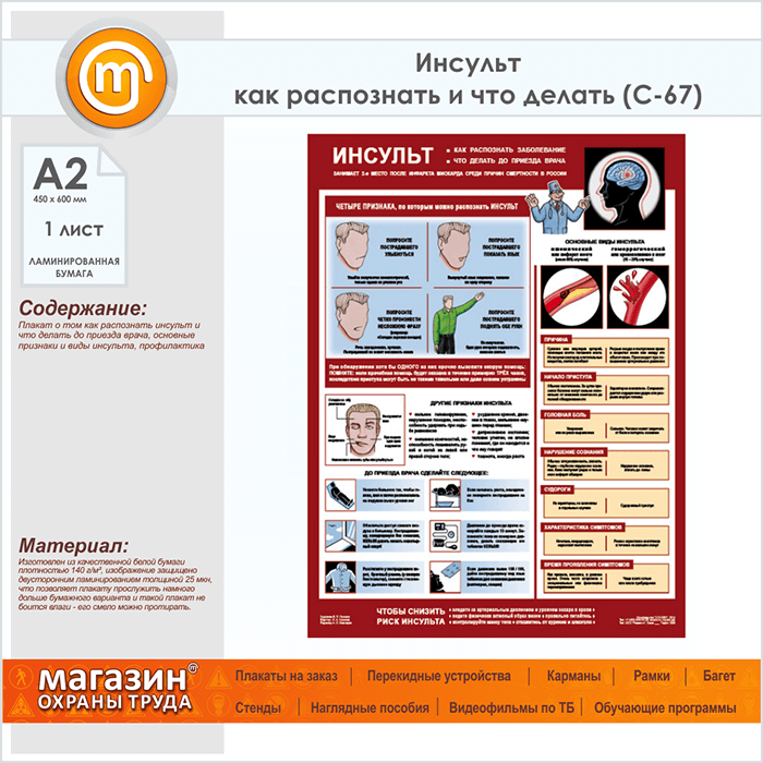 Плакат «Инсульт - как распознать и что делать» (С-67, ламинированная бумага, А2, 1 лист) в Волгограде купить