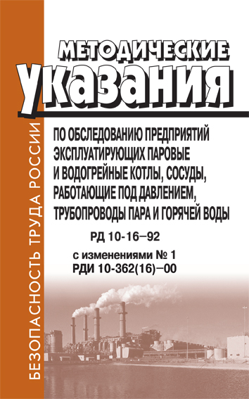 Методические указания по обследованию предприятий, эксплуатирующих паровые и водогрейные котлы, сосуды, работающие под давлением, трубопроводы пара и горячей воды. РД 10-16-92 (ЛД-112) в Волгограде купить