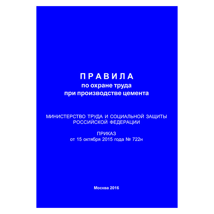 Правила по охране труда при производстве цемента (Приказ Минтруда РФ от 15.10.2015 № 722н) (ЛАП-28) в Волгограде купить