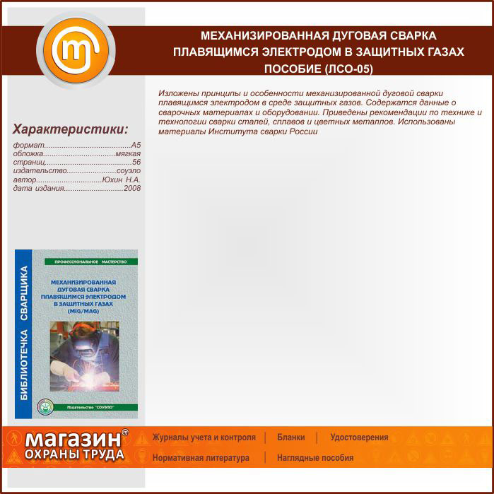 Механизированная дуговая сварка плавящимся электродом в защитных газах – пособие (ЛСО-05) в Волгограде купить