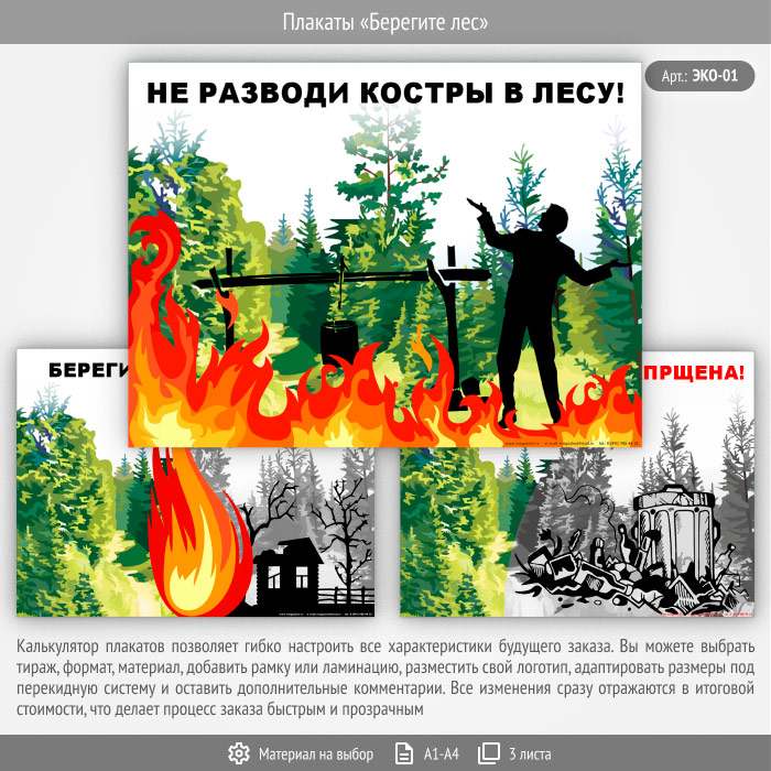 Плакаты «Берегите лес» (ЭКО-01, 3 листа) в Волгограде купить
