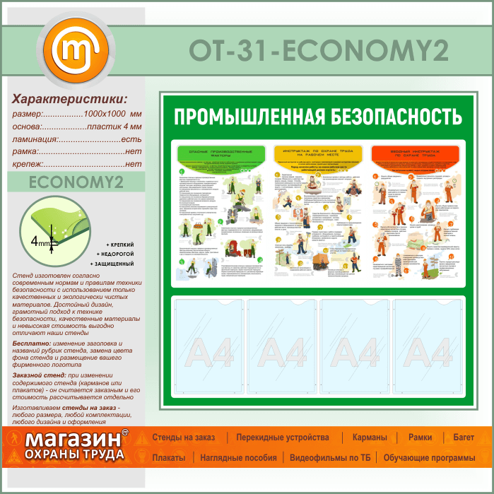 Стенд «Промышленная безопасность» с 4 карманами (OT-31-ECONOMY2) в Волгограде купить