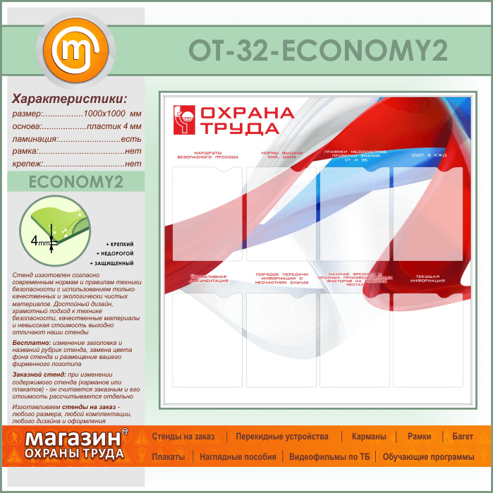 Стенд «Охрана труда» с 8 карманами (OT-32-ECONOMY2) в Волгограде купить