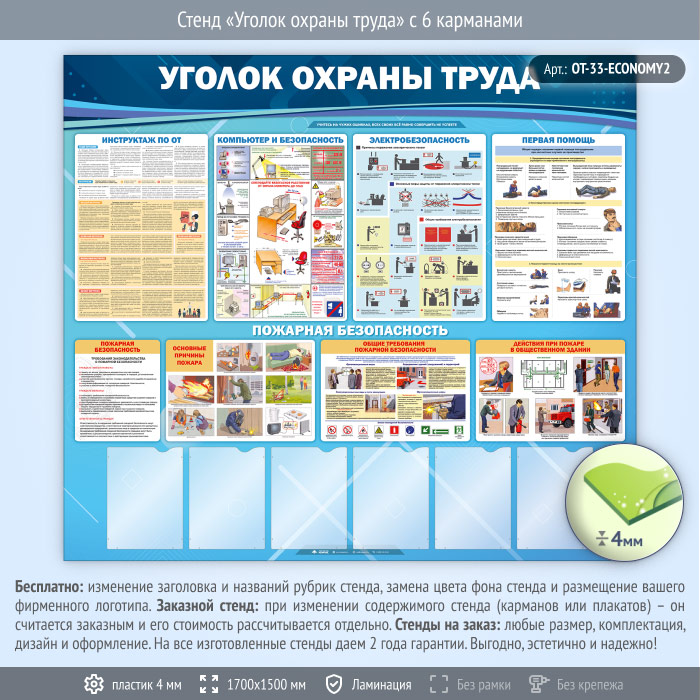 Стенд «Уголок охраны труда» с 6 карманами (OT-33-ECONOMY2) в Волгограде купить