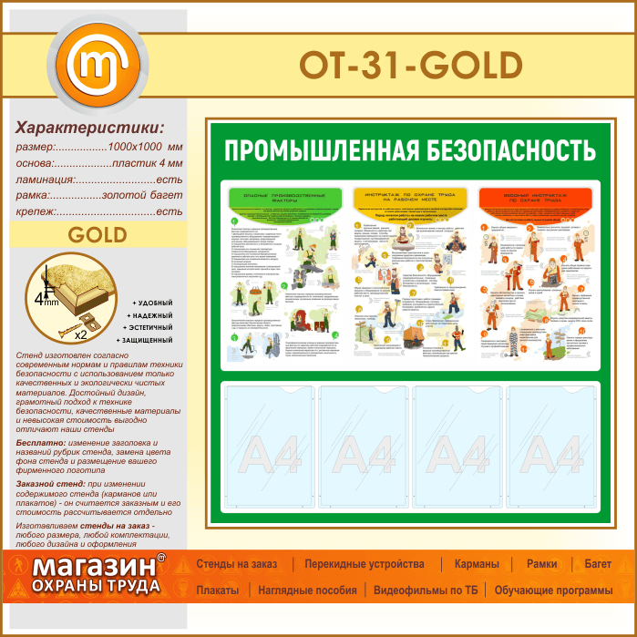Стенд «Промышленная безопасность» с 4 карманами (OT-31-GOLD) в Волгограде купить