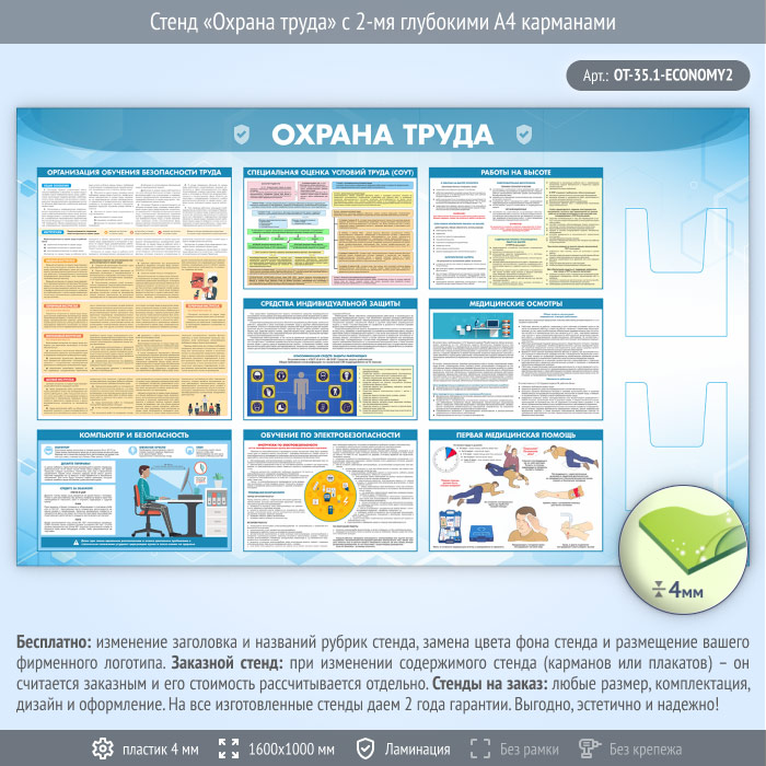 Стенд «Охрана труда» с 2-мя глубокими А4 карманами (OT-35.1-ECONOMY2) в Волгограде купить