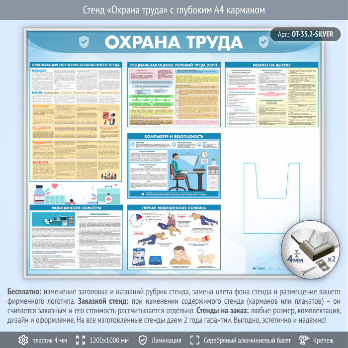 Стенд «Охрана труда» с глубоким А4 карманом (OT-35.2-SILVER) в Волгограде купить