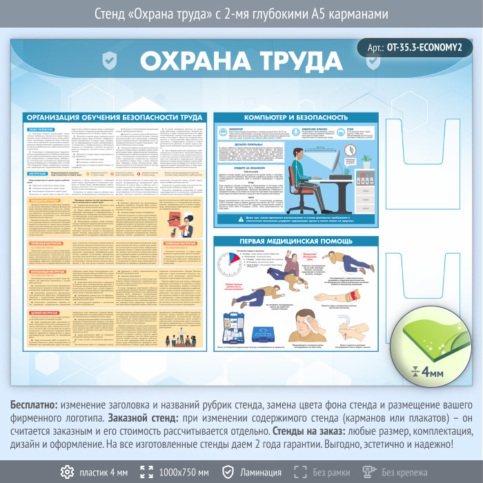 Стенд «Охрана труда» с 2-мя глубокими А5 карманами (OT-35.3-ECONOMY2) в Волгограде купить