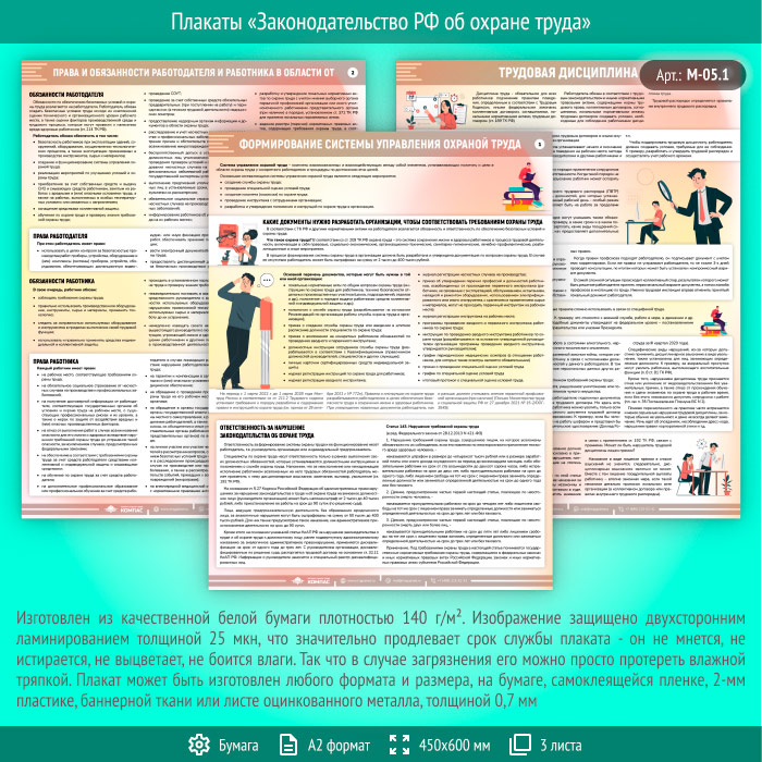 Плакаты «Законодательство РФ об охране труда» (М-05.1, ламинированная бумага, А2, 3 листа) в Волгограде купить