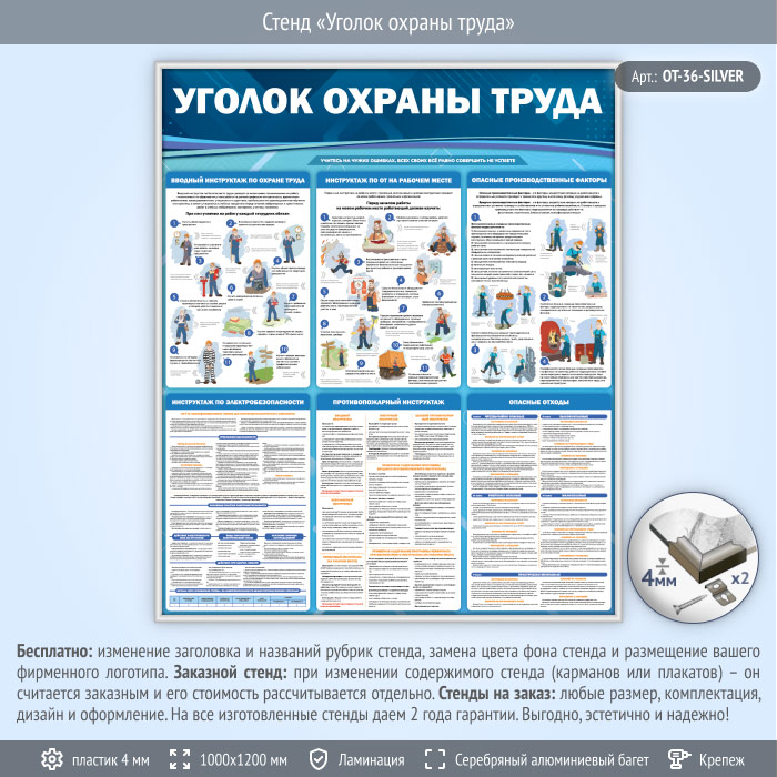 Стенд «Уголок охраны труда» (OT-36-SILVER) в Волгограде купить