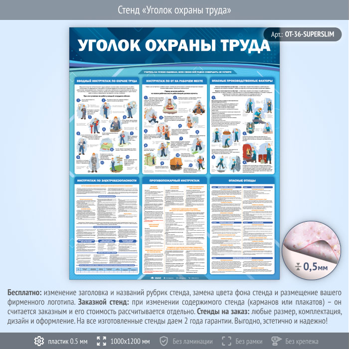 Стенд «Уголок охраны труда» (OT-36-SUPERSLIM) в Волгограде купить