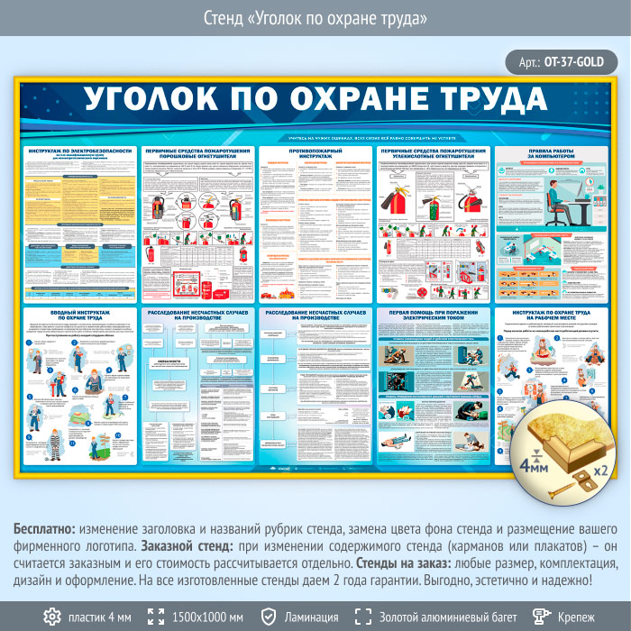 Стенд «Уголок по охране труда» (OT-37-GOLD) в Волгограде купить