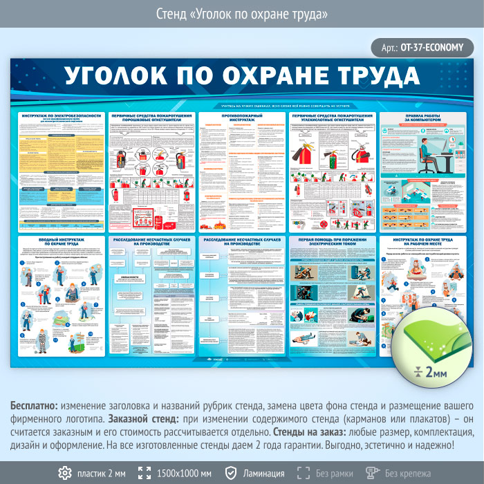Стенд «Уголок по охране труда» (OT-37-ECONOMY) в Волгограде купить