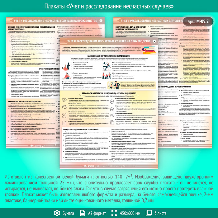 Плакаты «Учет и расследование несчастных случаев» (М-09.2, ламинированная бумага, А2, 3 листа) в Волгограде купить