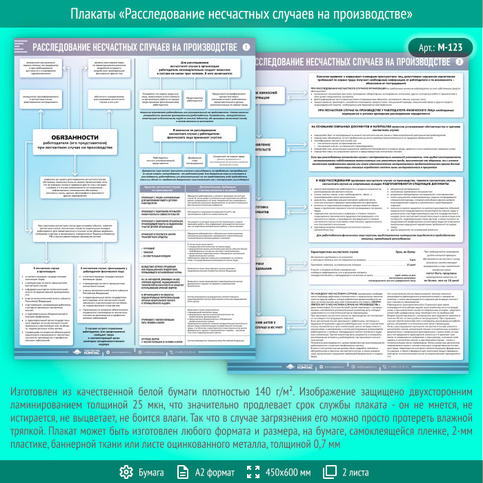 Плакаты «Расследование несчастных случаев на производстве» (М-123, ламинированная бумага, А2, 2 листа) в Волгограде купить