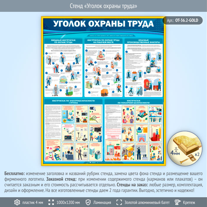 Стенд «Уголок охраны труда» (OT-36.2-GOLD) в Волгограде купить