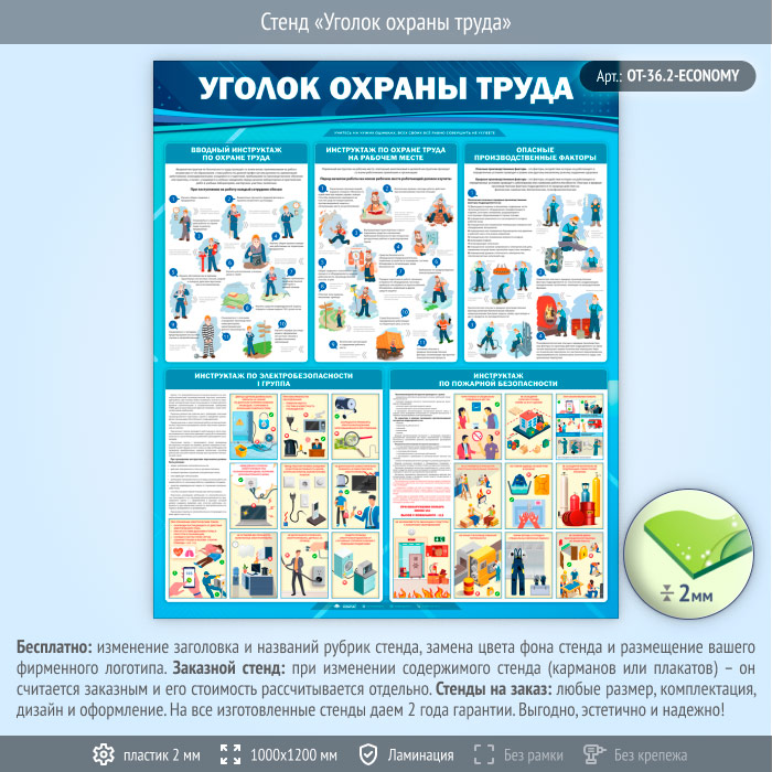 Стенд «Уголок охраны труда» (OT-36.2-ECONOMY) в Волгограде купить