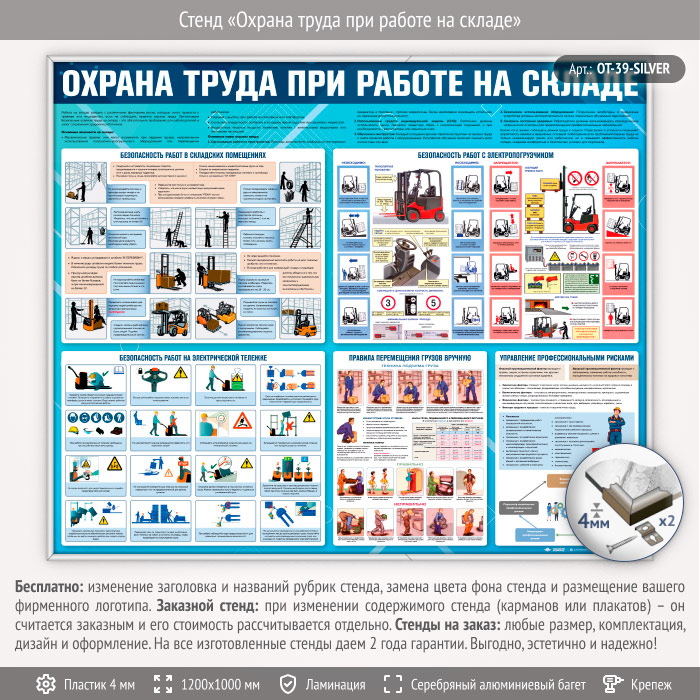 Стенд «Охрана труда при работе на складе» (OT-39-SILVER) в Волгограде купить