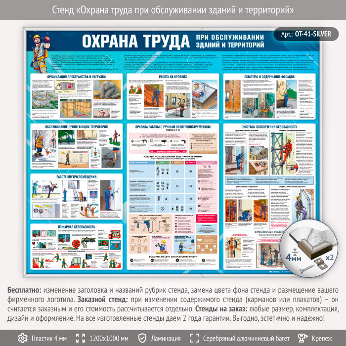 Стенд «Охрана труда при обслуживании зданий и территорий» (OT-41-SILVER) в Волгограде купить