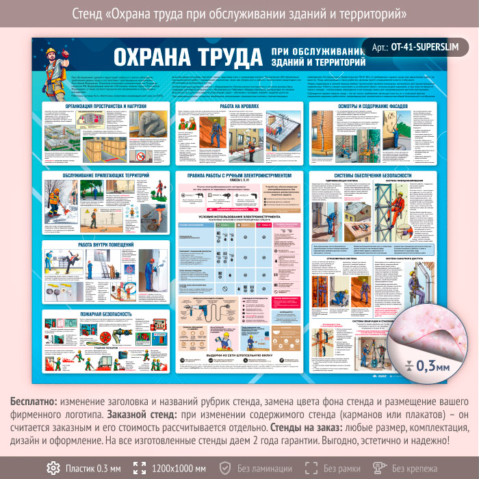 Стенд «Охрана труда при обслуживании зданий и территорий» (OT-41-SUPERSLIM) в Волгограде купить