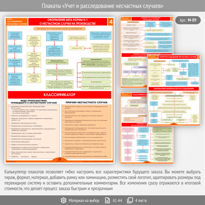 Плакаты «Учет и расследование несчастных случаев» (М-09, 4 листа) в Волгограде купить
