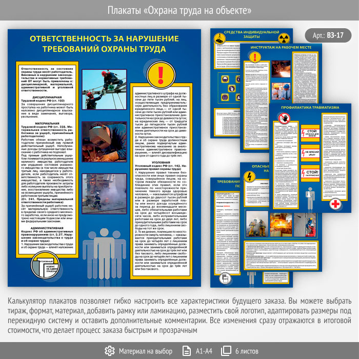 Плакаты «Охрана труда на объекте» (ВЗ-17, 6 листов) в Волгограде купить